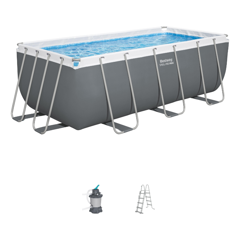 This Bestway Steel Pro Max Rectangular Frame Pool Set includes a powerful sand filter to keep your water clean and sparkling (sand not included). There is also a ladder for easy and safe access to the pool. A self-adhesive repair patch is also included to quickly repair minor damage.