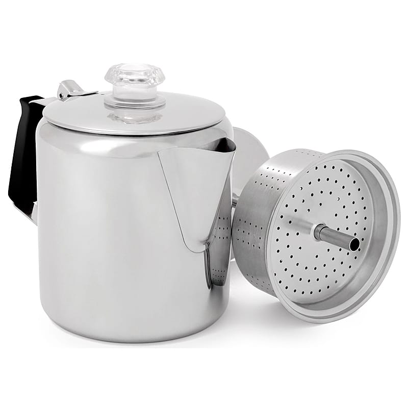 What could be better than freshly brewed coffee and a beautiful view to start your morning at the campsite? With the GSI Outdoors Stainless Percolator you can have at least one of those covered.