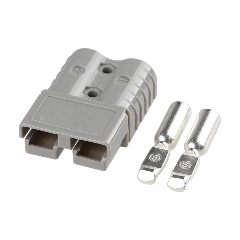 A grey 120 amp rated anderson-style square connector for high current connections